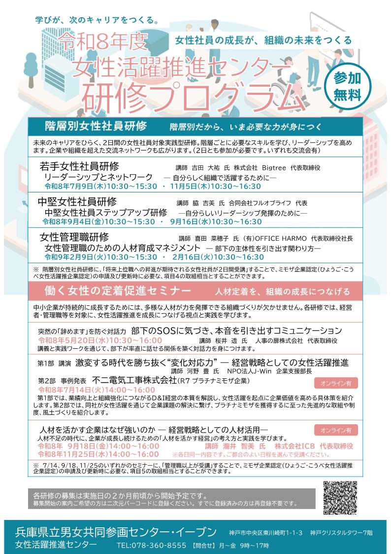 令和8年度の女性活躍推進センター研修スケジュールを公開いたしました。