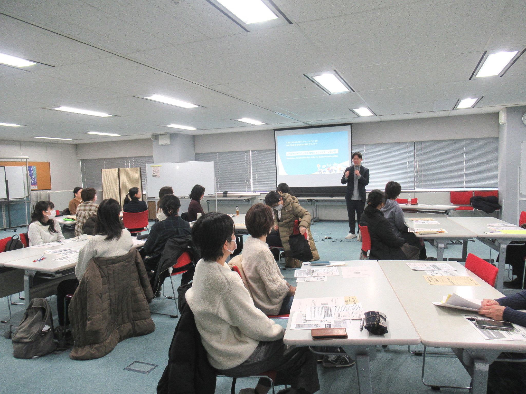 職場のコミュニケーションに悩む女性に向けて、初対面の方と話す場面や苦手な上司への対応など、ワークを交え分かりやすくお話しいただきました。
